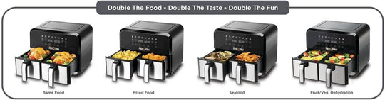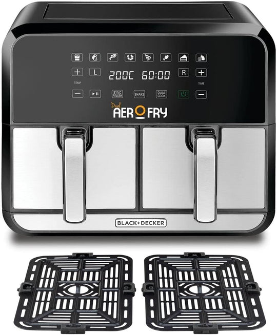 Black & Decker Digital Dual Zone Air Fryer 1700W 4L+4L Capacity With Rapid Hot Air Circulation For Frying, Grilling, Broiling, Roasting, and Baking DZAF1700-B5 2 Year Warranty
