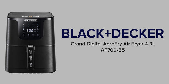 No reviewsBlack+Decker Grand Digital AeroFry Air Fryer 4.3L, Black, AF700-B5 - Take the right step towards a healthy lifestyle with the BLACK+DECKER Grand Digital AeroFry Air Fryer (AF700-B5). With a 4.3L capacity and Rapid Air Convection Technology,...Price Dhs.349.00 -