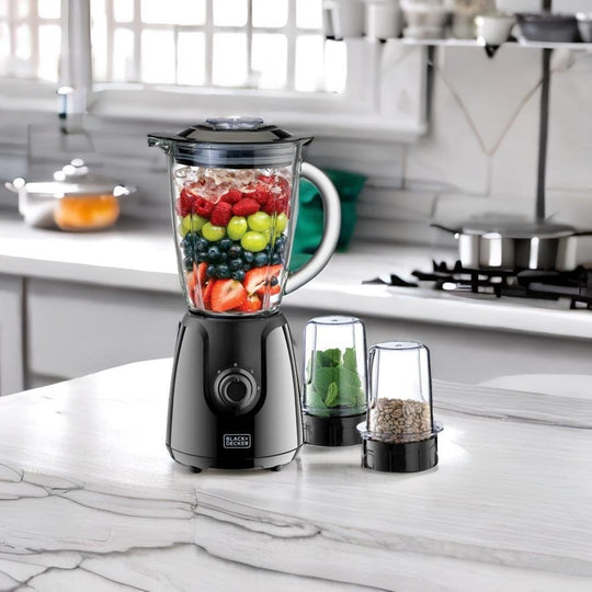 Black & Decker 400W Blender With Glass Jar And 2 Grinding Mill, Black, Bx440G-B5, Year Warranty