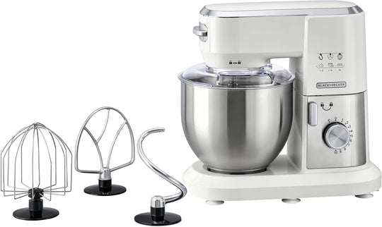 Black & Decker Kitchen Stand Mixer Machine, 1000W Power, 4L Large Capacity, Stainless Steel Bowl, 6 Speed Settings for Perfect Baking Results, Easy Mixing & Kneading, 2 years warranty, SM1000-B5