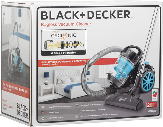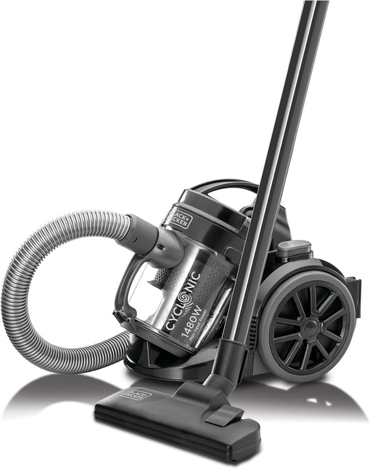 Black & Decker Multi-Cyclonic Bagless Corded Canister Vacuum Cleaner with 6 Stage Filtration, 1600 W Max Power, 20 kPa Suction Power, Red/Black, 2.5 L, VM1680-B5