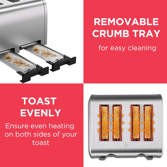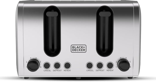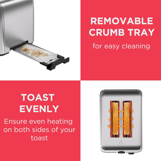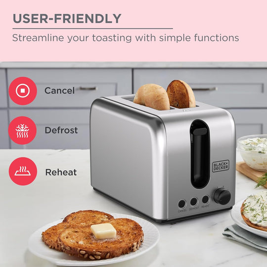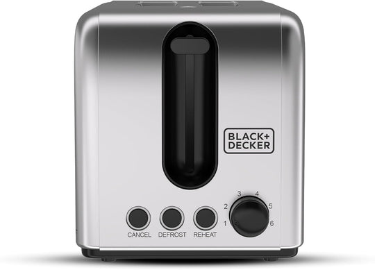 BLACK+DECKER 2-Slice Toaster, 1050W, Double-Side Heating, 6- Browning settings, Defrost,Reheated&Cancel function,Wide Slots, Dual Independent Browning, Removable Crumb Tray, Stainless steel-ET244-B5