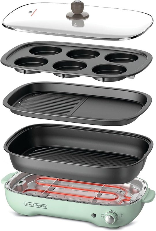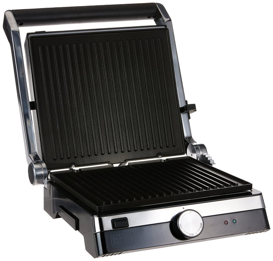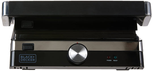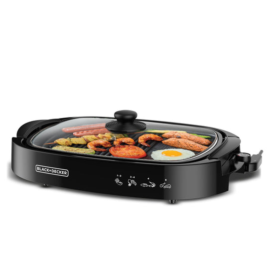 BLACK+DECKER 1500W, Electric Health Grill, Large Family Sized,Non Stick Griddle with Glass Lid,5- Level Temp Control, Cool Touch Handles, Efficient Fat Draining and Dishwasher Safe, Black- GH1500-B5