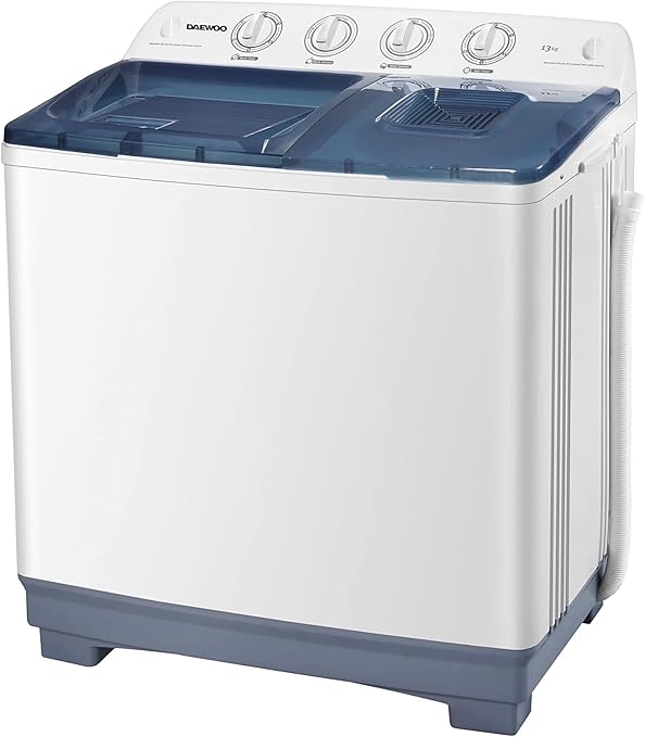 - Daewoo - 13 Kg Twin Tub Semi Automatic Washing Machine - White - DW-T131WD - 1 Year Warranty.