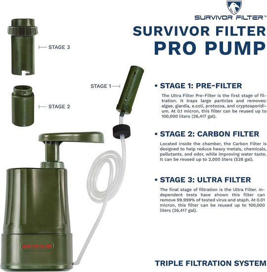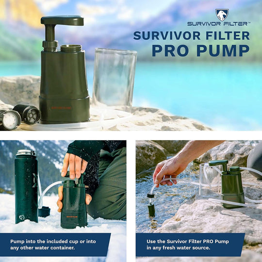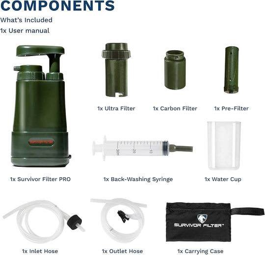 Survivor Filter PRO - 0.01 Micron Water Purifier. Comes with Assembled with Internal Filters (Carbon, Membrane), Free Carry Bag, Attachable Water Cup + 2 Cotton Pre-Filters No chemicals. Removes Di...