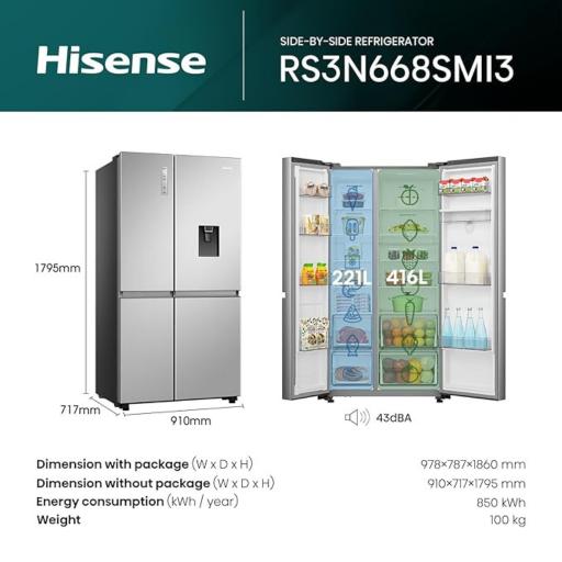 Vendor: Hisense Hisense RS3N668SMI3 - Two Door Side by Side 637L Fridge No reviewsPrice Dhs.2,469.00