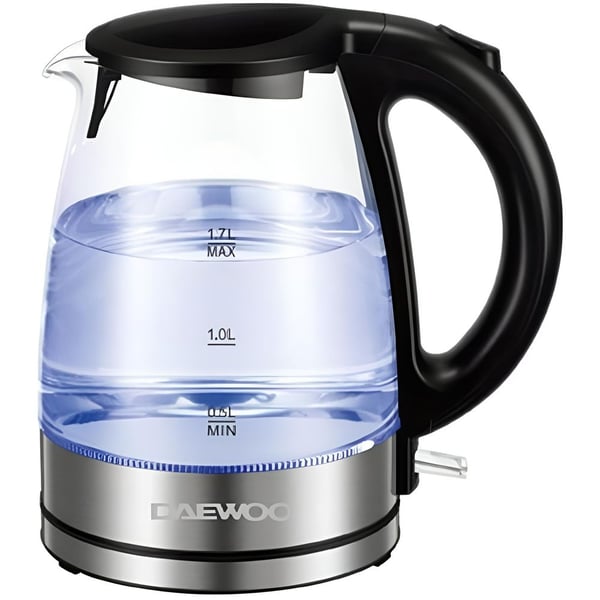 -35%The Daewoo Glass Kettle DEK-1218 combines elegant design with practical functionality, making it a perfect addition to any kitchen. This electric kettle features a sleek glass body that allows you to see the water level and boiling process. With a powerful 2200W heating element, it quickly brings water to a boil, making it ideal for preparing tea, coffee, and other hot beverages. The 1.7-liter capacity ensures you have enough hot water for multiple cups at once. The kettle also includes a blue LED light indicator that illuminates when the kettle is in operation, adding a touch of style to your kitchen.