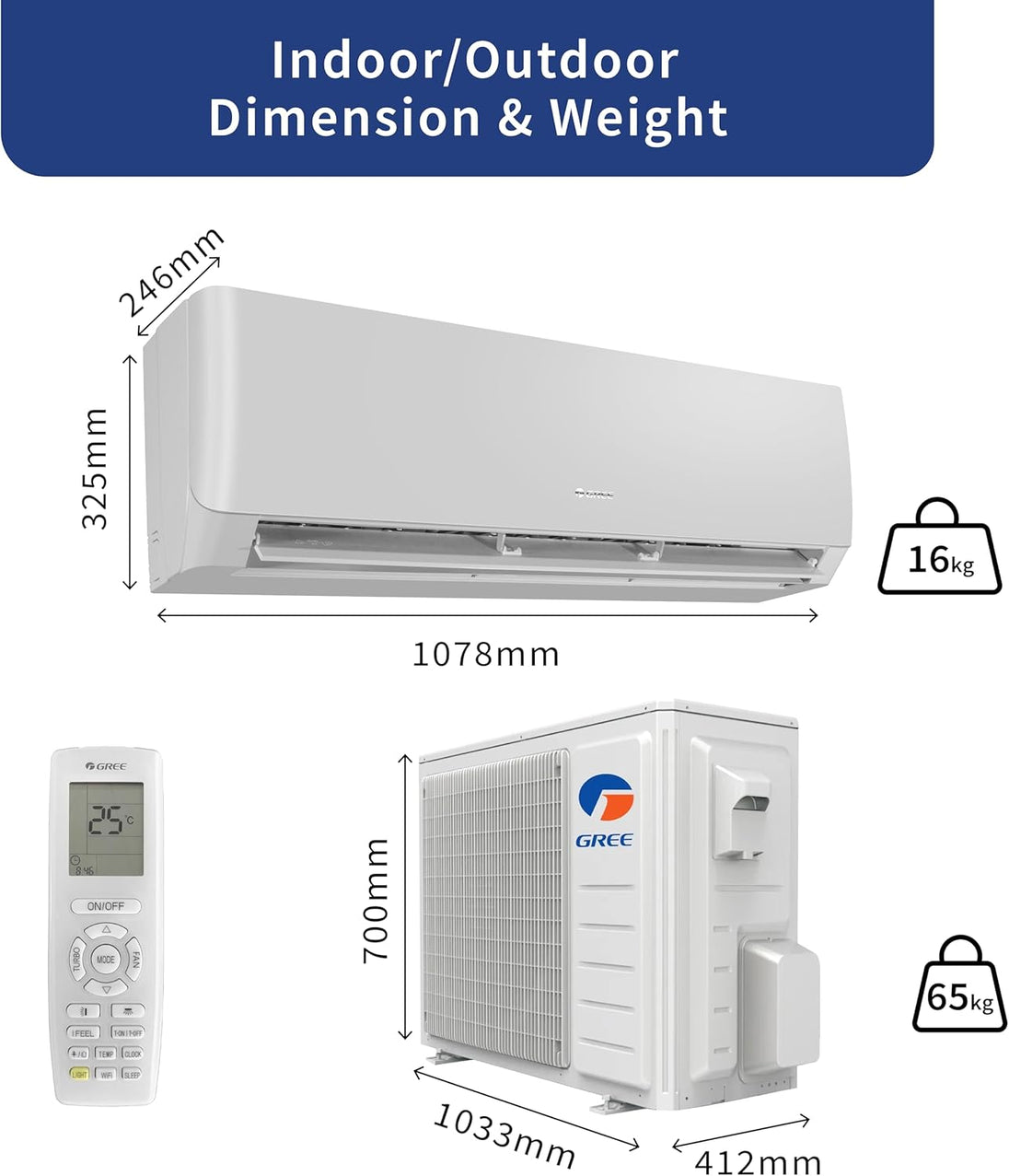 Gree Split Air Conditioner 1.0 Ton - Wifi Enabled - Rotary Compressor, R410A - PULAR-R12C3-10 Years Full Parts Warranty.